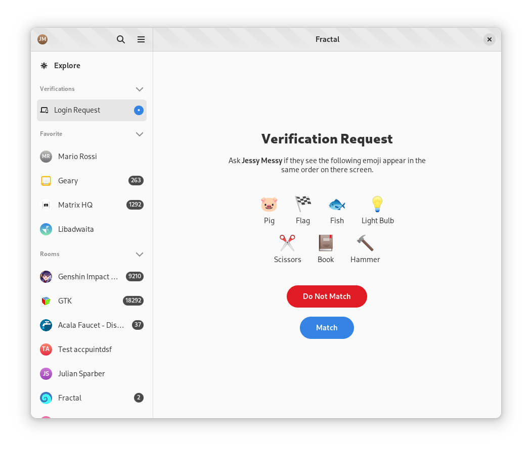 • Fractal-Next now supports verification of other users by scanning their QR code, or via emoji